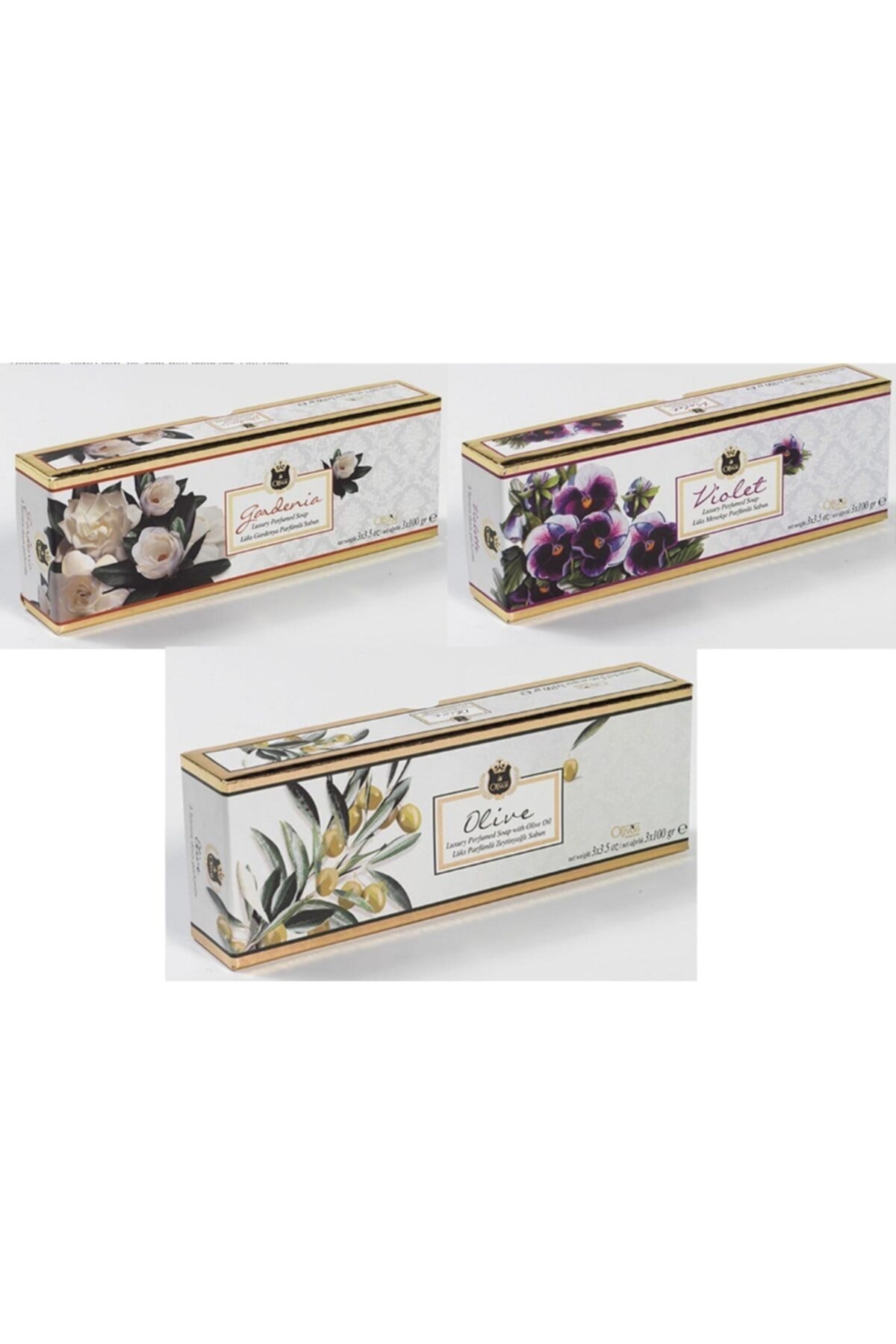 Olivos Lux Set 1 Gardenia Sabunu 3×100 gr Menekşe Sabunu 3×100 gr Zeytin Sabunu 3×100 gr