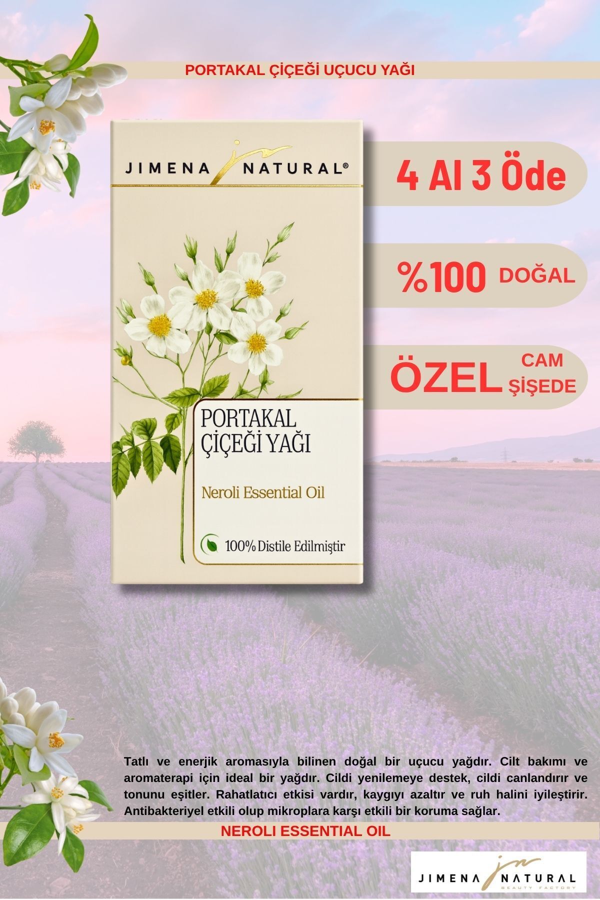 – Tatlı ve enerjik aromasıyla bilinen doğal bir uçucu yağdır.; Cilt bakımı ve aromaterapi için ideal bir yağdır.; Cildi yenilemeye destek, cildi canlandırır ve tonunu eşitler.; Rahatlatıcı etkisi vardır, kaygıyı azaltır ve ruh halini .; etkili olup mikroplara karşı etkili bir koruma sağlar.; – Saç ve cilt bakımı için ideal, unisex kullanım sunan portakal çiçeği uçucu yağı.; – 30 ml hacmiyle uzun süreli kullanım imkanı sağlar.; – Saç tipleri ne olursa olsun, her saç tipine uygun besleyici ve onarıcı etki sunar.; – Tehlikeli olmayan içeriğiyle güvenle kullanılabilir.; – Türkiye menşeli olup, yerel üretimden gelen kaliteyi yansıtır.; – Refill özelliği sayesinde biten ürününüzü kolayca yenileyebilir, sürdürülebilir bir kullanım deneyimi yaşayabilirsiniz.;